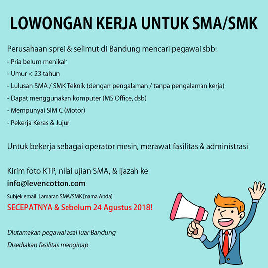 Siapa bilang lulusan SMA hanya bisa jadi penonton di dunia kerja? Di Jember, kota yang dinamis dan penuh potensi, pintu lowongan kerja Jember lulusan SMA terbuka lebar bagi mereka yang memiliki semangat, kemauan belajar, dan tekad untuk berkarir. Jember, dengan pertumbuhan ekonomi yang pesat dan keberagaman sektor industrinya, menawarkan segudang peluang karir yang tak kalah ...